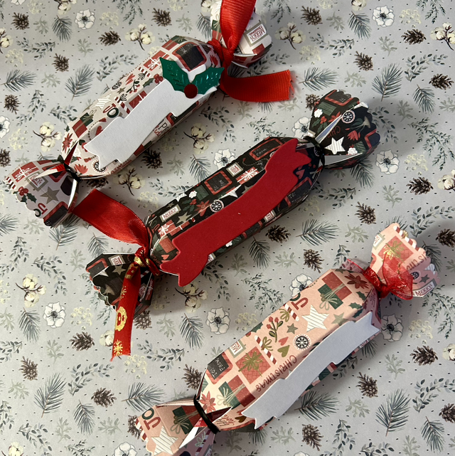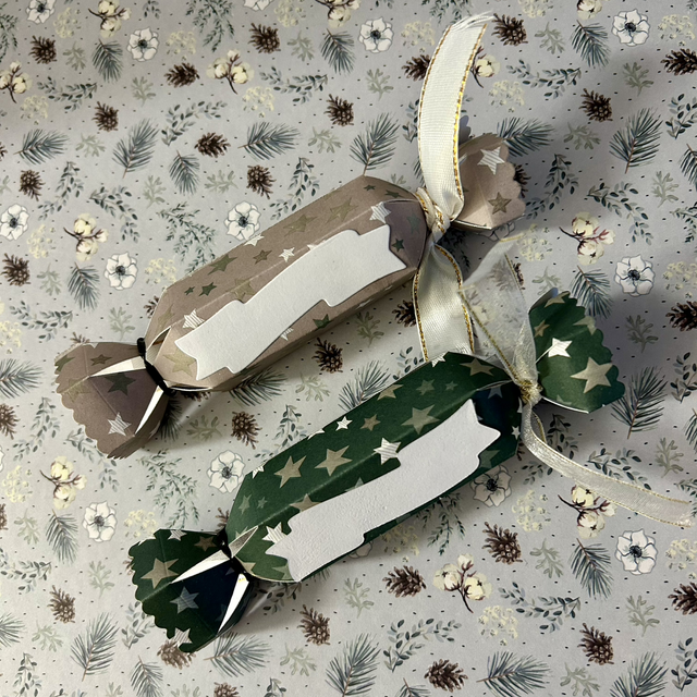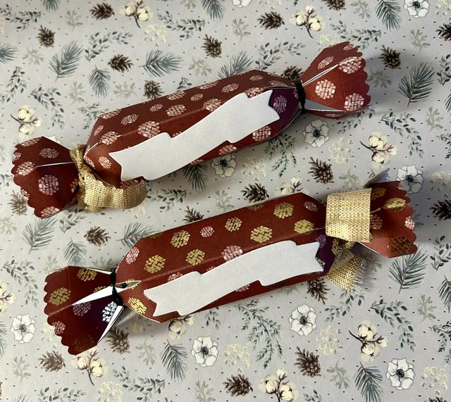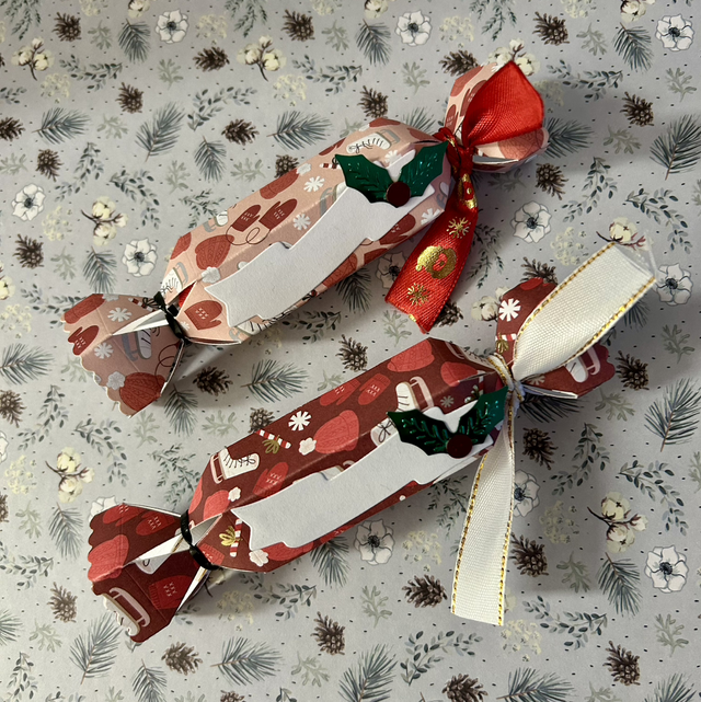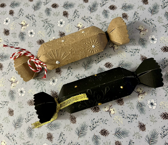Boîte en forme de bonbon, avec liens décoratifs, pour y cacher quelques petites sucreries ou billets ou mots doux...
